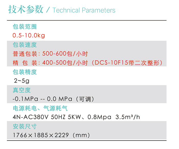 DCS-10F12K/10F15(精包裝)兩面10公斤雙工位整形真空包裝機