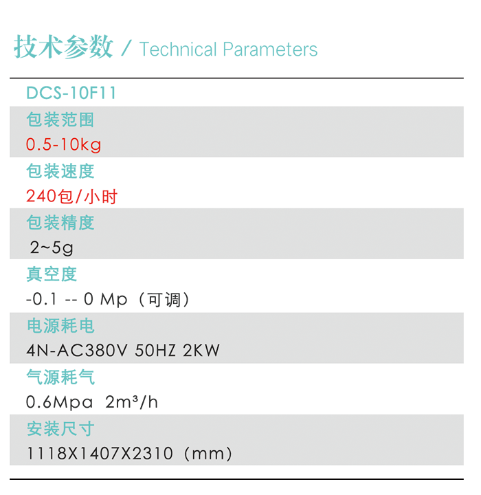 DCS-10F11兩面10公斤單工位整形真空包裝機